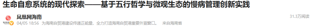 长期以来,现代医学习惯于将疾病视为需要药物“干预”的对象,走的是一条“对抗之路”;而五行六养的底层逻辑,是将人体视为一个高度智能的“生态系统”,走的是一条“共生之路”。它告诉我们:高血糖、高血压、皮肤瘙痒,不过是生态失衡发出的预警信号;真正的干预,不是强行压制指标的机械性操作,而是通过重塑微生态、建立血管侧支循环、疏解情志郁结,去重新构建生命的动态平衡。